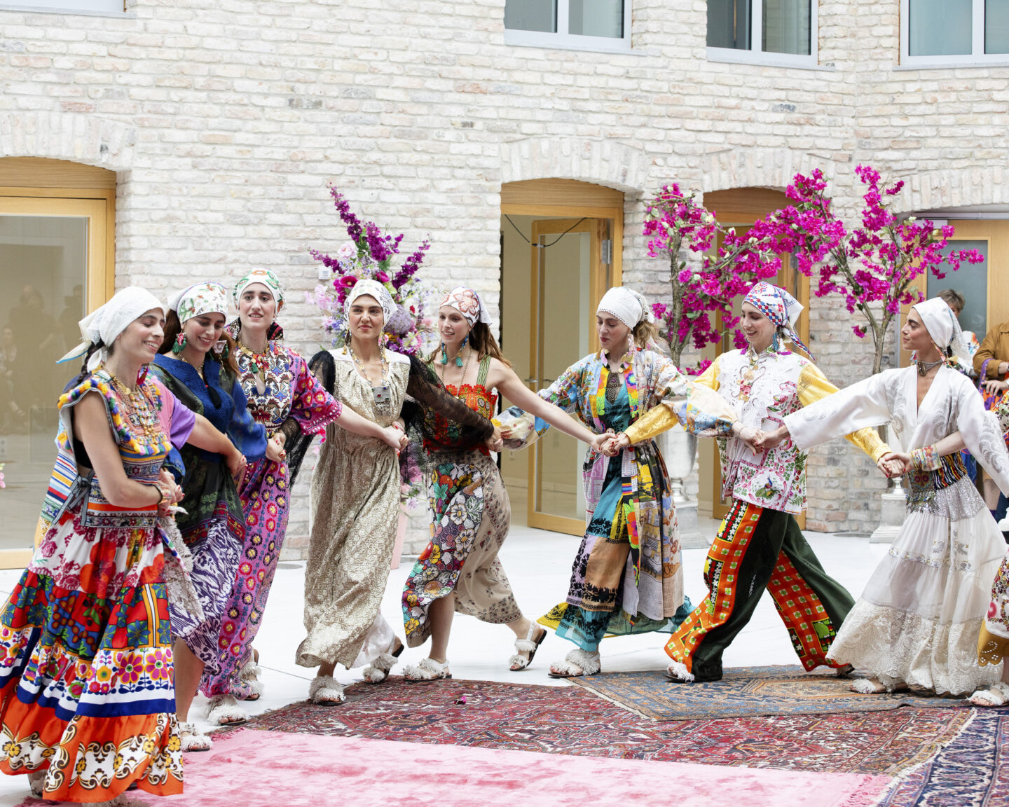 It comes from Rianna’s rich Greek heritage, which has had a big impact on her creative direction. The theme Folklore delves into mythology and nature as it imprints itself into daily life through classic objects such as tablecloths, vases, plates, and many more. The performance concept will reflect its meaning, highlighting traditional Greek garments, inspired by Greek folk wear.