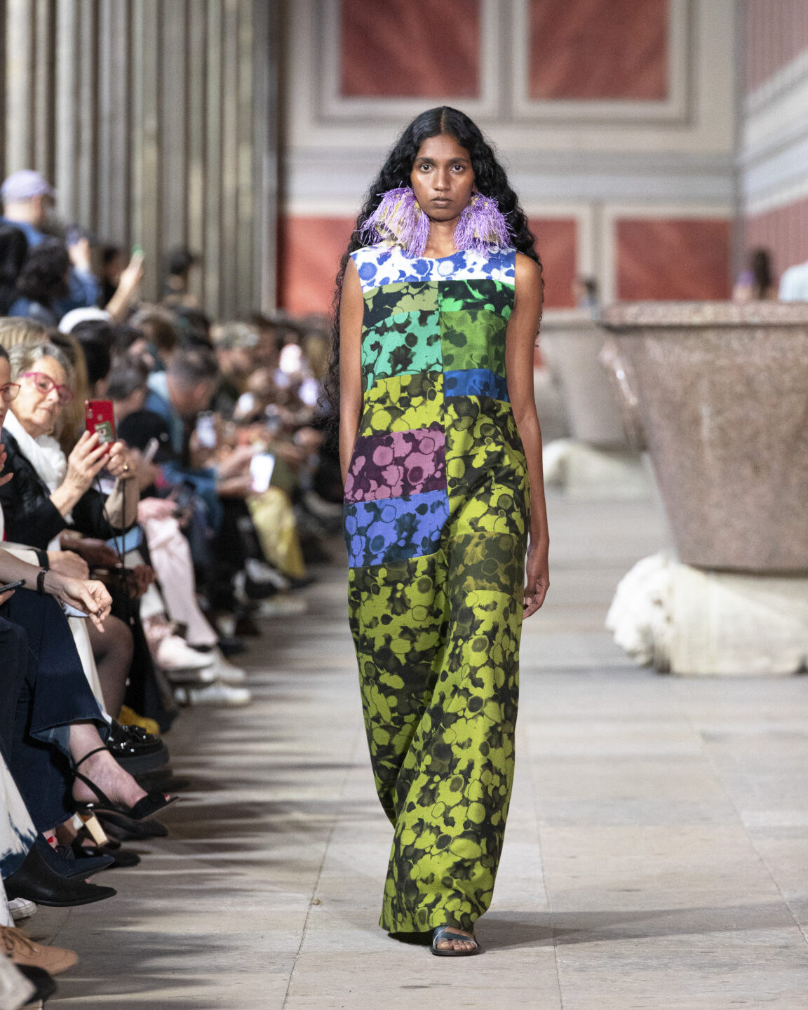 In Latin, “Horror Vacui” means “fear of empty space.” Contrary to this definition, Anna Heinrichs showcased mainly colorful and pattern-rich looks, featuring ruffles, drapery, or smocking, all exuding a highly romantic vibe.
