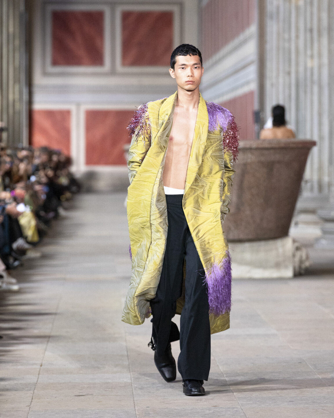 The grand finale of the second day of Berlin Fashion Week took place in the colonnade of the Altes Museum, where Otto Drögsler and Jörg Ehrlich, the duo behind ODEEH, presented their latest collection. The Berlin Contemporary winners once again showcased highly eclectic designs this season, all united by one thing: artisanal excellence.