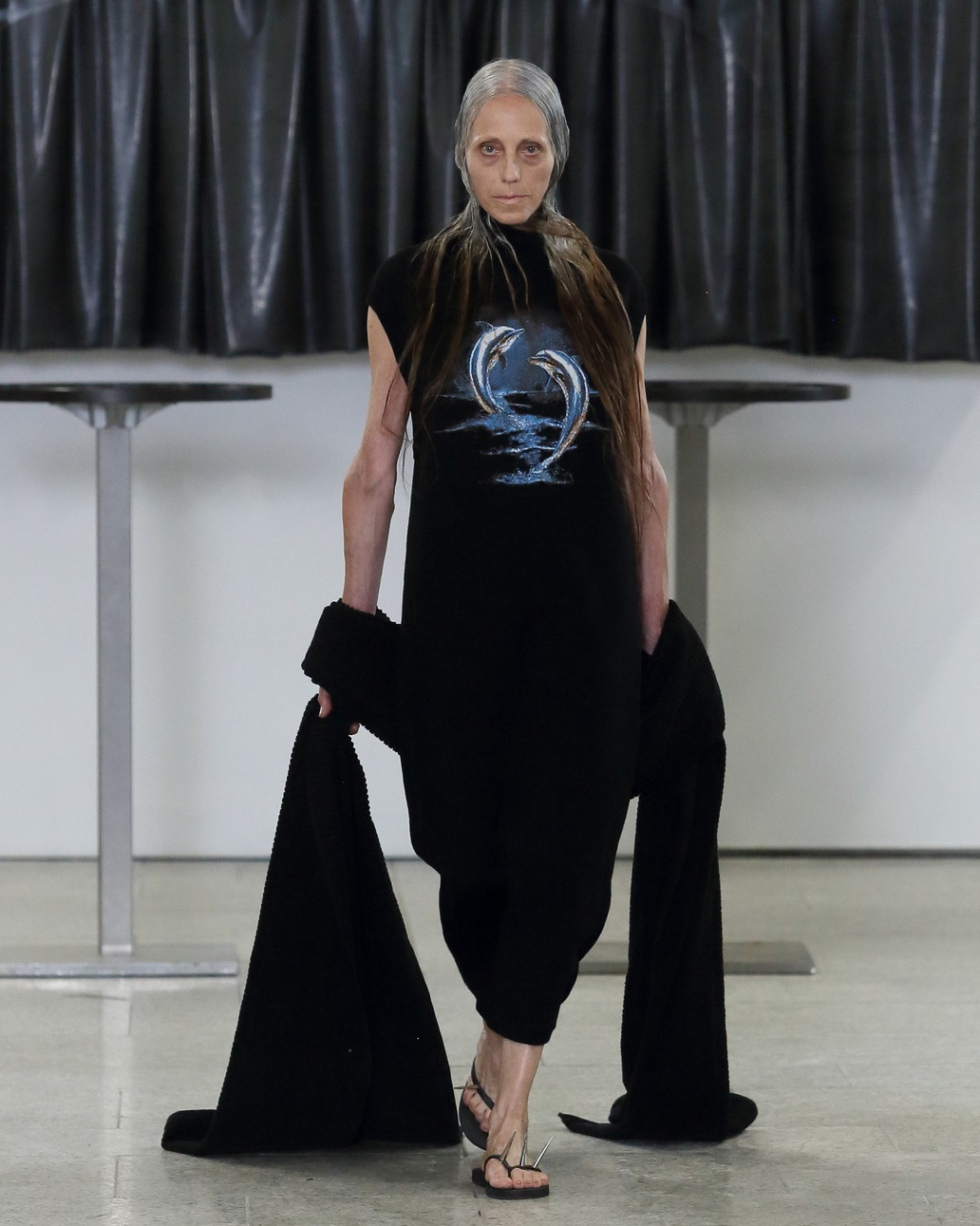 In a vacant storefront, under harsh neon lights, with aggressive buzzing noises and between fly breeding boxes, Sia Arnika presented her ready-to-wear collection. This season, too, the Danish designer’s looks are characterized by her love for detail and progressiveness. “Everything starts with the fabric, its textures, shapes, deconstruction, and the numerous contrasts that all my collections thrive on: disorder and embellishment, the everyday and the provocative, as well as the art of layering and shaping,” explains the designer.