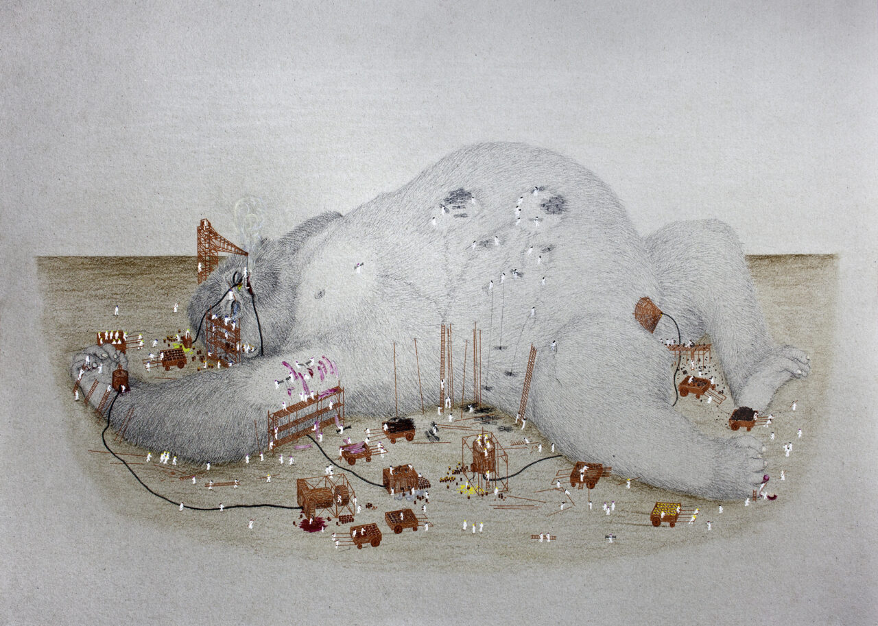Die für DOOM SNOOZERS ausgewählten und zum Teil neu entstandenen Zeichnungen, Drucke und Skulpturen aus verschiedenen Werkzusammenhängen eint eine teils liebe- und humorvolle, teils ironisch-distanzierte Überzeichnung der politischen, ökonomischen und ökologischen Auswirkungen des Unwesens, das wir Menschen mit unserem Planeten treiben. Spielerisch wechseln sie die Perspektive und zeigen die Welt je von einem potenziellen Ende her.