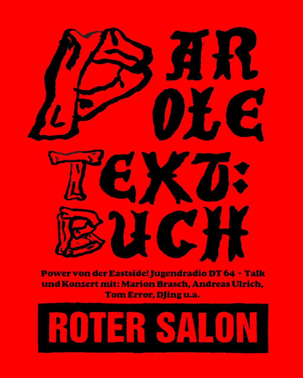 Am 29. Januar lässt im Roten Salon ein Abend die Geschichte von DT64 aufleben, mit zahlreichen Beiträgen, Gesprächen mit Herausgebern und Autor:innen und Live-Musik von Tom Error sowie Sets von Parocktikum-Diskothek + Zonic Zound Zystem.