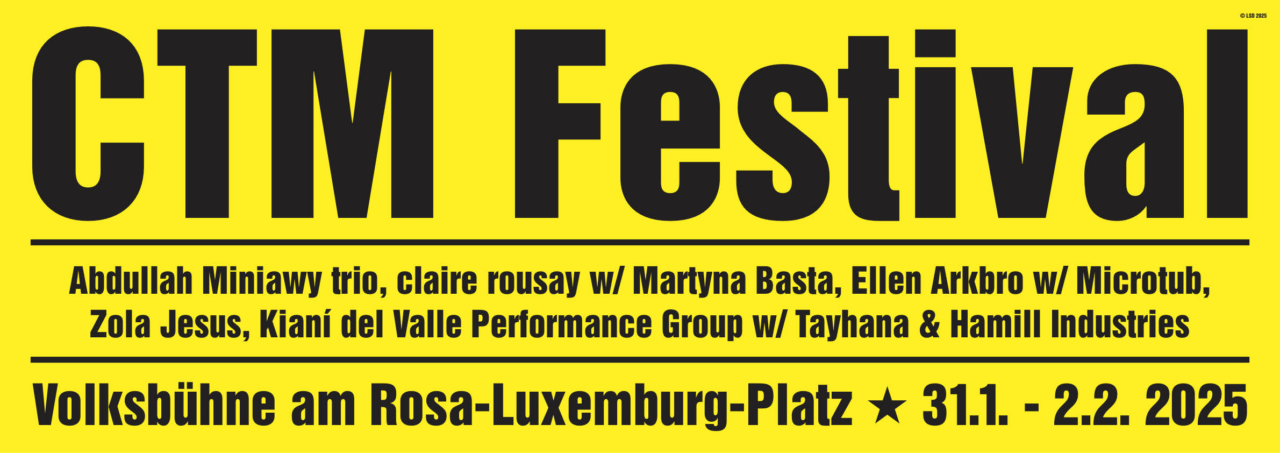 Das CTM Festival feiert auch in diesem Jahr Konzerte in der Volksbühne, von Kianí del Valle Performance Group, Ellen Arkbro, claire rousay mit Martyna Basta, Abdullah Miniawy und Zola Jesus.