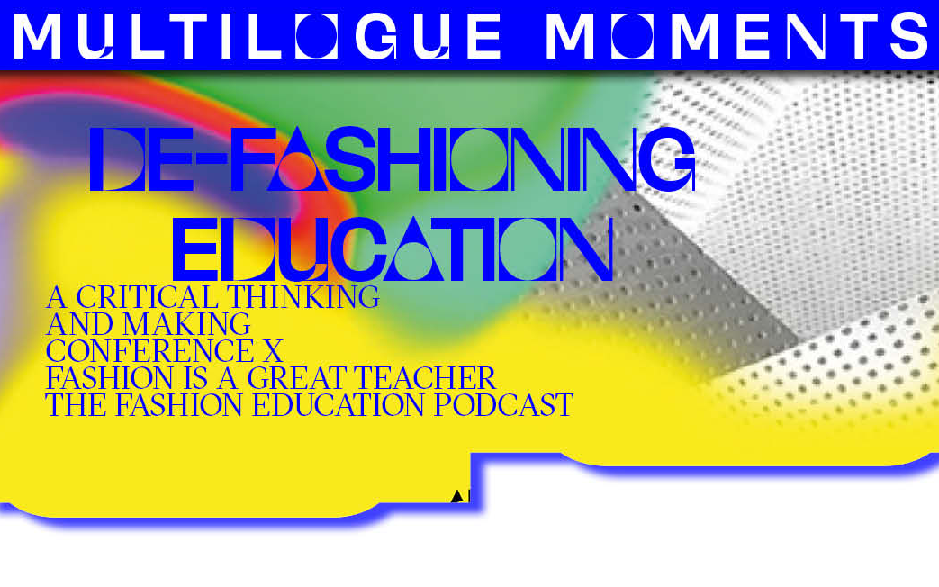 This series of Fashion is a great teacher brings you Provocations and a Choir of Ideas from The Digital Multilogue on Fashion Education 2023: De-Fashioning Education; a Critical Thinking and Making Conference. We invited speakers from every continent to share their concerns, questions and ideas: Anjana Das, Mayank Mansingh Kaul, Sandra Niessen, Sunny Dolat, Otto von Busch, and Christina H. Moon, as they navigate the complexities of de-fashioning education, cultural inclusivity, sustainability, and transformative partnerships.