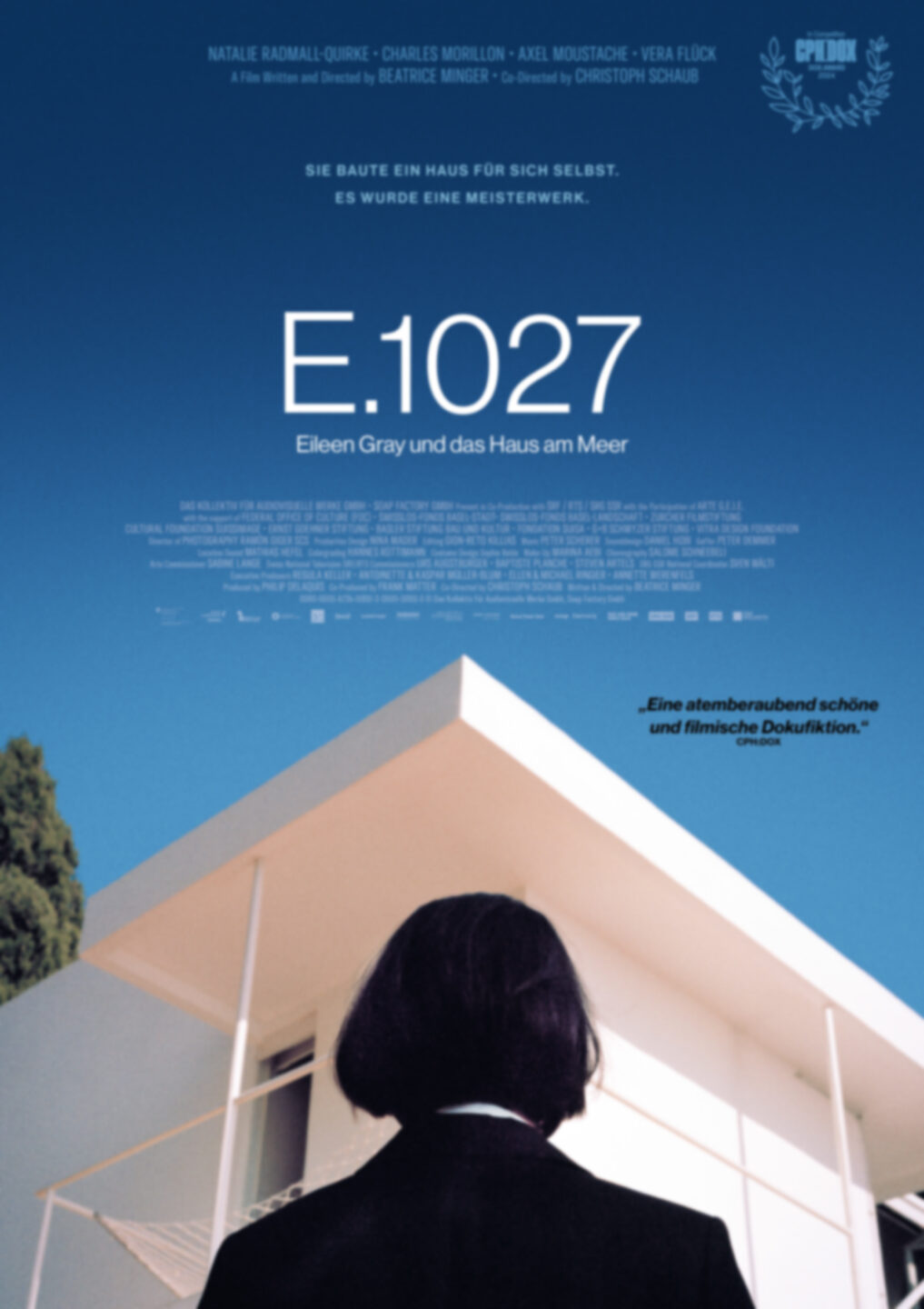 Der bundesweite Kinostart von E.1027 – EILEEN GRAY UND DAS HAUS AM MEER im Verleih von RISE AND SHINE CINEMA folgt im Herbst 2024. Das Drehbuch wurde von Beatrice Minger in Zusammenarbeit mit Christoph Schaub geschrieben. E.1027 – EILEEN GRAY UND DAS HAUS AM MEER rekonstruiert die dramatische Geschichte von Eileen Gray und ihrem atemberaubend schönen Haus an der Cote d’Azur.