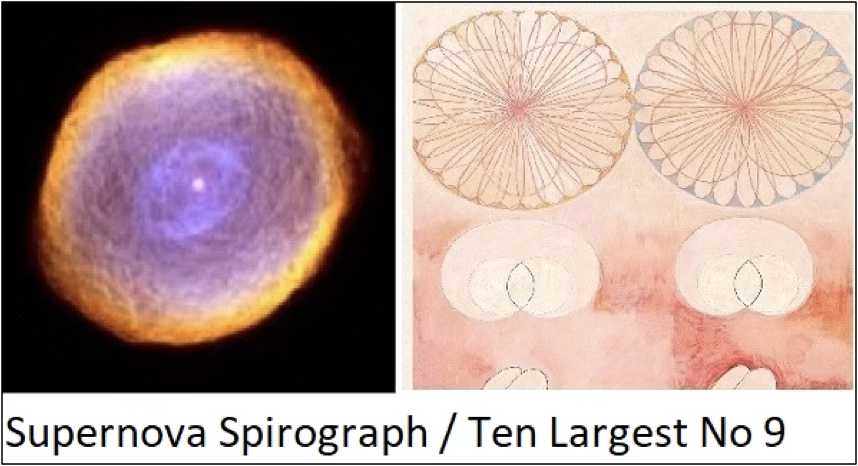 The purpose of this visual essay is to highlight a profound idea. The ultimate tool for exploring astronomy resides within our unconscious. The “abstract” painter Hilma af Klint achieved something truly remarkable in this regard. I have noticed that her main collection, “The Ten Largest”, painted in 1907, has at least ten astonishing similarities with ultra-modern astronomical images.