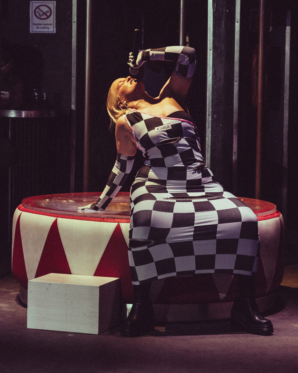 And then—release. The night reached its climax as Berlin-based drags, dancers, models, performers, and artists took the stage, their presence vibrating through the dimly lit space. Deep, pulsating bass shook the walls of KitKat Club, setting the rhythm for the final act. Draped in plush velvet, sheer layers, and oversized silhouettes, the collection’s closing statement was both protective and rebellious—an armour against the world, yet an invitation to unveil one’s truth.