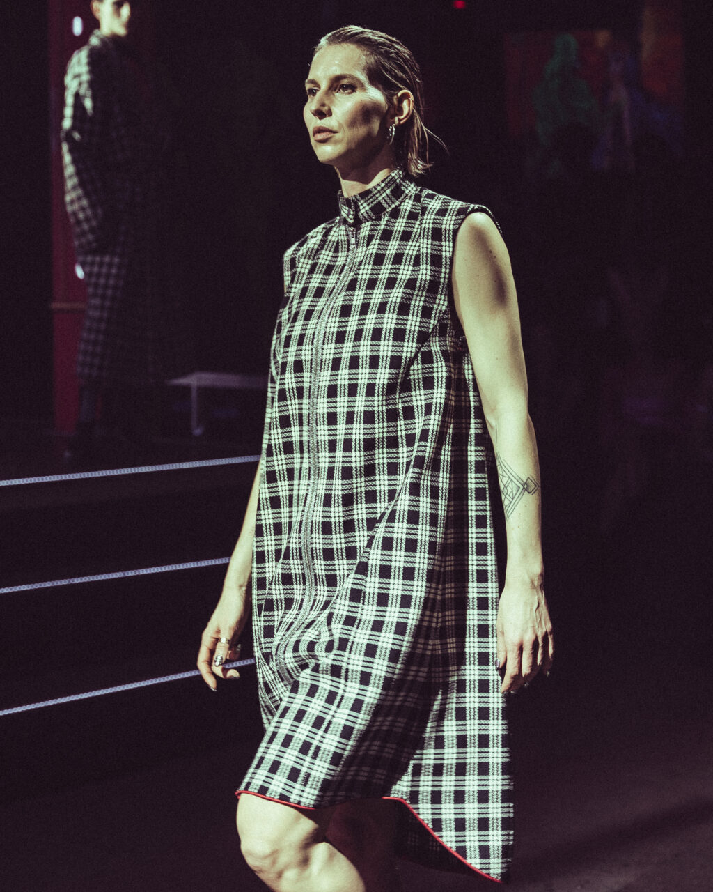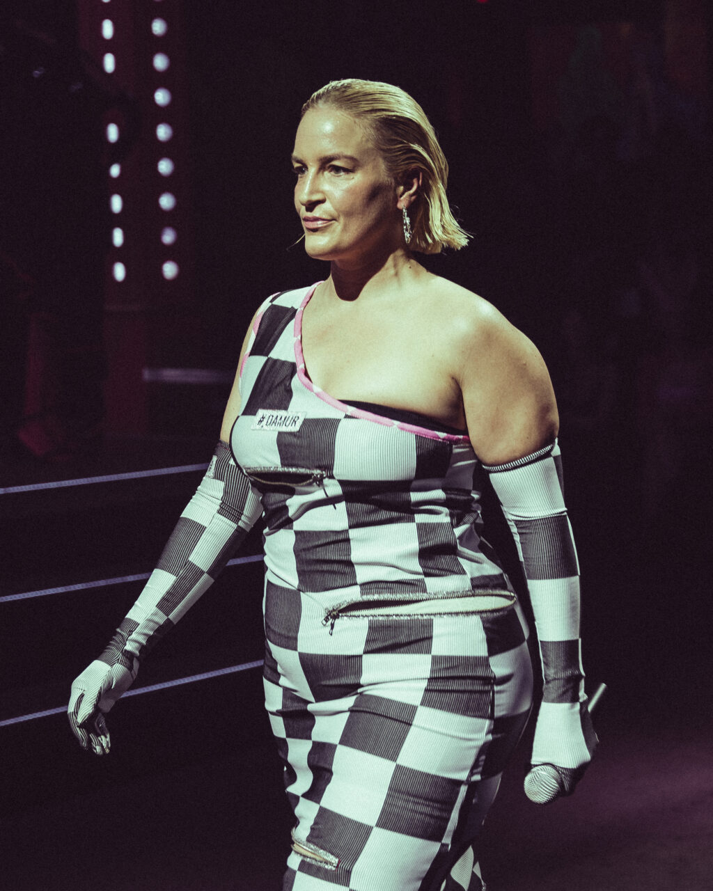 Hypnotic beats dictated every movement—models walked with deliberate defiance, embodying the spirit of resilience and individuality. The interplay of structured neoprene, fluid draping, and high-gloss finishes created a striking contrast between strength and vulnerability. This was more than a finale. It was a statement. A declaration of self-autonomy. Here, in the depths of Berlin’s most infamous club, the message became clear: This is your sanctuary. Your body, your story, your space.