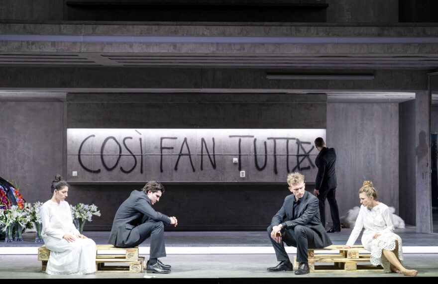 Ungewöhnlich und zeitgemäß bis in die letzte Szene wählte Kirill Serebrennikov ein moderneres Bühnenbild im Stile des Betonbrutalismus zu der herzzerreißenden Musik Mozarts und der Dramaturgie Lorenzo da Pontes. Bis ins Detail entwickelte sich die Komödie zu einem Versteckspiel von feministischen und komischen Referenzen vor zeitgemäßen Betonbrutalismus.