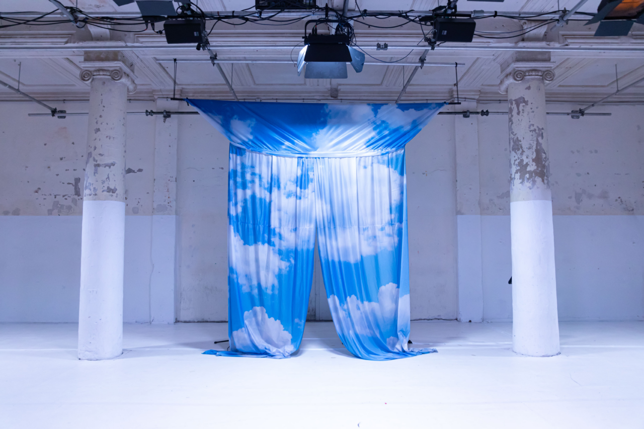 The exhibition A stage she’s going through marks the beginning of the project Becoming B and presents an installation by Melanie Jame Wolf, who herself was a fellow at Künstlerhaus Bethanien in 2020-21. The artist creates an installation of textile Thresholds that invite the public to move through them.