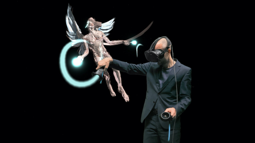 The painting is no longer isolated and simply hung on the wall, but merges with a large-scale virtual world. In turn, virtual reality is no longer a free-floating illusion, but seeks its foundations in the materiality of oil painting. The action of perception is based on the democratic principle of the voluntary involvement of the viewers. Through technology, they can observe and actively interact with the dynamic environment of the fantastic augmented reality, discovering a new world of digital gods – inhabiting utopian or apocalyptic universes.